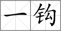 1.一个钩子。亦用于形容新月。 唐 韩偓 《雨村》诗:“雁行斜拂雨村楼,帘下三重幕一鉤。” 宋 惠洪 《秋夕示超然》诗:“一鉤窥隙月,数叶搅眠秋。” 元 贡师泰 《题丁元善炼师阳明楼》诗:“丹光散作霞千缕,劒气吹成月一鉤。” 茅盾 《子夜》十二:“满天的星,一钩细到几乎看不见的月亮。”