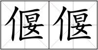 偃 : 偃yǎn仰面倒下,放倒:偃卧。偃仆。偃仰(俯仰,喻随俗应付)。偃旗息鼓。停止:偃息。偃武修文?