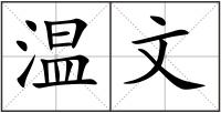 《礼记·文王世子》:“礼乐交错於中,发形於外,是故其成也懌,恭敬而温文。” 孔颖达 疏:“恭敬而温文者,谓内外有礼,貌恭心敬而温润文章。” 唐 孙逖 《授殷彦方等王傅制》:“教导之功,既闻於日就;温文之德,遂涉於春储。” 清 龚自珍 《己亥杂诗》之二八:“不是逢人苦誉君,亦狂亦侠亦温文。” 叶圣陶 《某城纪事》:“客人的语调都是故作温文而实则粗陋的一流。”