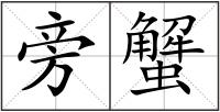 《埤雅·释鱼》:“﹝蟹﹞旁行,故今里语谓之旁蟹。” 明 郑明选 《蟹赋》:“粤惟旁蟹,厥形瓌诡,二螫如傲,八足如跪。”
