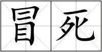 《后汉书·寇荣传》:“臣诚恐卒为豺狼横见噬食,故冒死欲诣闕,披肝胆,布腹心。” 宋 陆游 《老学庵笔记》卷二:“有 振武 都头卒,不堪一行人须索,忽操白刃入斫 圣美 ,其子冒死直前护救。” 清 金和 《围城纪事·咏盟夷》:“冒死入奏得帝命,江水汪汪和议定。”