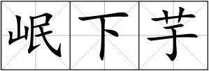 岷下芋 [mín xià yù]语本《史记·货殖列传》:“吾闻 汶山 之下,沃野,下有蹲鴟,至死不飢。”张守节 正义:“蹲鴟,芋也。言 卭州 临卭县 其地肥又沃,平野有大芋等也。”汶山 ,即 岷山 。后因以“岷下芋”为芋的美称。