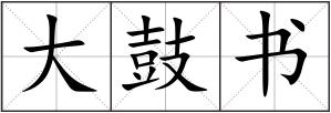 大鼓书 [dà gǔ shū]曲艺的一种。由一人自击鼓、板演唱,一至数人用三弦等乐器伴奏。唱词多采用民间流传的历史故事等,用韵文编成。一般认为 清 初形成于 山东 、河北 的农村。主要流行于北方,兼及 长江 和 珠江 流域的部分地区。因地区、方言和曲调的不同而有不同的名称,如京韵大鼓、乐亭大鼓、东北大鼓、山东大鼓、湖北大鼓、广西大鼓等,总称为大鼓书,简称大鼓。