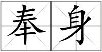 宋 王禹偁 《官舍偶题》诗:“奉身无实事,困我为虚名。” 明 无名氏 《运甓记·太真借饷》:“事若有济,则臣主同祚;万一不捷,亦当奉身以谢先帝。”