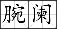 阑 : 阑(闌)lán同“栏”①。同“拦”。〔阑干〕a.同“栏杆”;b.纵横交错,参差错落,如“梦?