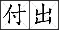 付 : 付fù交,给:支付。托付。付款。付梓(把稿件交付刊印)。付讫。付出。付与。付之一笑。付诸东流? www.wENTIYI.Com