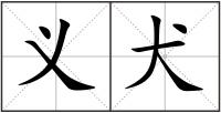 犬 : 犬quǎn狗:猎犬。警犬。犬马之劳。犬牙交错。犬子(谦辞,对人称自己的儿子)。桀犬吠尧(喻走狗?