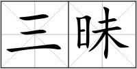 三昧 [sān mèi]佛教语。梵文音译。又译“三摩地”。意译为“正定”。谓屏除杂念,心不散乱,专注一境。