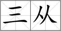 三从 [sān cóng]旧礼教认为妇女应该做到在家从父,出嫁从夫,夫死从子,谓之“三从”。