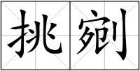 挑 : 挑tiāo扁担等两头挂着东西,用肩担着:挑土。挑夫(旧时以给人挑货物行李为业的人)。挑的东西: