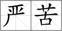严 : 严(嚴)yán紧密,没有空隙:严紧。严密。不放松,认真:严格。严肃。严正(严肃正当)。严明(