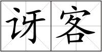 客 : 客kè外来的(人),与“主”相对:客人。宾客。会客。不速之客。客气。客卿。外出或寄居,迁居外