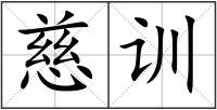 《文选·谢朓<齐敬皇后哀策文>》:“閔予不祐,慈训早违。” 李善 注引《晋中兴书》:“ 肃祖 太妃 荀氏 薨, 显宗 詔曰:‘朕少遭閔凶,慈训无禀。’” 清 陈裴之 《湘烟小录》:“前日读君家大人慈训有曰:‘惜身心而报以笔墨,俾与 朝云 、 蒨桃 并传。’”