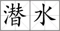 潜 : 潜qián隐在水面下活动:潜水。潜泳。潜坝。潜行(a.在水面以下行动;b.在外边秘密行动)。隐