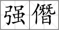 强 : 强qiáng健壮,有力,与“弱”相对:强壮。强健。强人。强力。强大。强劲。刚强。富强。列强。强弩