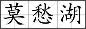 莫愁湖 [mò chóu hú]在 江苏省 南京市 水西门 外。周约三公里。相传 六朝 时有女子 莫愁 居此,故名。