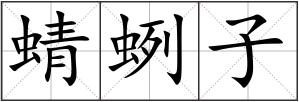 蜻蛚子 [qīng liè zǐ]虫名。似蟋蟀而小,绿色,能鸣。