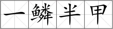 一鳞半甲 [yī lín bàn jiǎ]原指龙在云中,东露一鳞,西露半爪,看不到它的全貌。比喻零星片段的事物。
