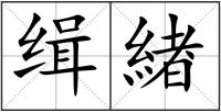 緖 : 緖xù同“緒”。笔画数:15;部首:糹;笔顺编号:554444121325114