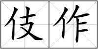 作 : 作zuò起,兴起,现在起:振作。枪声大作。从事,做工:工作。作息。作业。举行,进行:作别(分