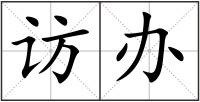访 : 访(訪)fǎng向人询问,调查:访求(探访寻求)。访员(记者)。搜奇访古。探问,看望:访视。?