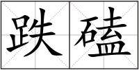 明 徐渭 《翠乡梦》第一出:“象俺们宝塔上的阶梯,从一二层扒将八九,不知有几多般的跌磕蹭蹬。” 清 黄六鸿 《福惠全书·刑名·印官亲验》:“而拳棍、砖石与跌磕之伤易验也。”