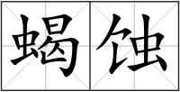 蚀 : 蚀(蝕)shí损伤,亏缺:侵蚀。腐蚀。蠹蚀。蚀本。同“食”。笔画数:9;部首:虫;笔顺编?