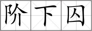 阶下囚 [jiē xià qiú]堂下的囚犯。泛指在押的犯人或俘虏。