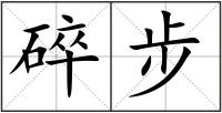 杨朔 《三千里江山》第十七段:“尽后尾是一溜妇女,后脊梁揹着小孩,背着手,踏着像舞蹈似的碎步,用脚培着土,曼声哼着小曲。” 徐迟 《<牡丹>跋》:“六十岁的演员,演出了这个十六岁的少女!当她以雀跃式的碎步出台,一回眸,一闪身,一抛巾,一亮相,观众免不了知趣地一笑。”