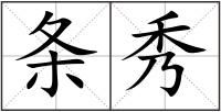 条 : 条(條)tiáo植物的细长枝:枝条。柳条儿。荆条。泛称条形的东西:条子。面条儿。便(bi刵 )条