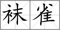 雀 : 雀què鸟类的一科,吃粮食粒和昆虫。特指“麻雀”,泛指小鸟:雀跃(高兴得像雀儿那样跳跃)。雀盲