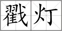 戳灯 [chuō dēng]旧时书有姓氏或其他印记以标志门第的灯笼。有长柄,可插于底座上,亦可扛着走。