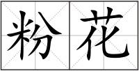 粉 : 粉fěn细末儿:粉末。粉剂。粉尘。米粉。花粉。药粉。漂白粉。特指化装用的粉末:香粉。粉墨登场?