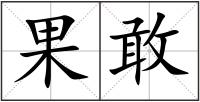 《逸周书·谥法》:“彊毅果敢曰刚。” 唐 李咸用 《猛虎行》诗:“爪牙欺白刃,果敢无前阵。”《明史·常遇春传》:“ 遇春 沉鷙果敢,善抚士卒,摧锋陷阵,未尝败北。” 魏巍 《东方》第六部第十一章:“她已经长大了,在战争的烈火中长大了,处处英勇果敢,意志坚强。”