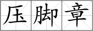 压脚章 [yā jiǎo zhāng]见“压脚图书 ”。
