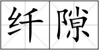 纤 : 纤(纖)xiān细小:纤人(卑鄙的小人)。纤介(细微,细小。亦作“纤芥”)。纤手(指女子细而柔