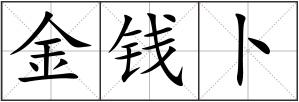 金钱卜 [jīn qián bǔ]旧时以钱币占卜吉凶祸福的方法。其法不一,一般用六枚制钱置于竹筒中,祝祷后,连摇数次,使制钱在内翻动,然后倒出,排成长行,视六枚制钱的背和字的排列次序,以推断吉凶祸福。