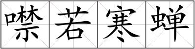 寒蝉 : ①天冷时不再叫或叫声低微的蝉:~凄切丨噤若~。 ②蝉的一种,身体小,黑色,有黄绿色的斑点,翅膀透明。雄的有发音器,夏末秋初时在树上叫。