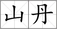 丹 : 丹dān红色:丹砂(朱砂)。丹桂(观赏植物,花为橘红色)。丹心碧血(赤诚的忠心,珍贵的热血)。