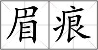 唐 孙棨 《北里志·颜令宾》:“不堪襟袖上,犹印旧眉痕。” 明 高濂 《玉簪记·寄弄》:“一度春来,一番花褪,怎生上我眉痕。” 清 龚自珍 《己亥杂诗》之二五四:“眉痕英絶语謖謖,指挥小婢带韜略。”