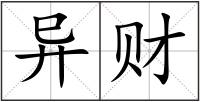 汉 班固 《白虎通·封公侯》:“受命不封子者,父子手足,无分离异财之义。”《后汉书·党锢传序》:“礼,从祖兄弟别居异财,恩义已轻,服属疎末。” 清 姚衡 《寒秀草堂笔记》卷三:“然谓 安氏 异财时,剖此帖为二。”wwW.WeNtIyi.cOm
