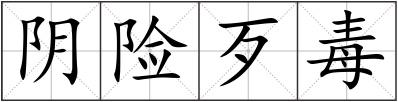阴险 : 表面做好人,背地里搞鬼:阴险毒辣|内心阴险|这个人非常阴险。