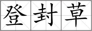 汉 司马相如 遗文言封禅事,后人以“登封草”泛指歌颂皇帝功德的文章。 唐 许敬宗 《奉和执契静三边应诏》:“欣逢德化流,思效登封草。” 南唐 陈陶 《朝元引》之四:“近臣谁献登封草,五岳齐呼万岁声。”