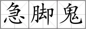 急脚鬼 [jí jiǎo guǐ]比喻急性子的人。