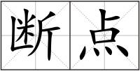 断 : 断(斷)duàn长形的东西从中间分开:断裂。断层。断面。截断。断肠。断魂。断线风筝。不继续,?