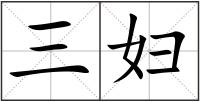 妇 : 妇(婦)fù已婚的女子:妇人。少(sh刼 )妇。妻,与“夫”相对:夫妇。儿媳:妇姑(婆媳)。?