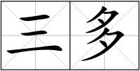 三多 [sān duō]指多福、多寿、多男子。祝颂之辞。语本《庄子·天地》:“尧 观乎 华 ,华 封人曰:‘嘻,圣人!请祝圣人,使圣人寿。’尧 曰‘辞’。‘使圣人富。’尧 曰‘辞’。‘使圣人多男子。’尧 曰‘辞’。”明 李渔 《慎鸾交·赠妓》:“长幡绣佛祝三多。”Www.weNTIYI.CoM
