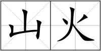 1.山中草木焚烧而燃起的火。包括撂荒﹑行猎等人为燃起的山火,以及雷电等自然原因引起的山火。 2.指《易》六十四卦中的《贲》卦。因其外卦为艮,内卦为离,卦象为山﹑火,故名。
