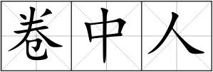 宋 张君房 《丽情集·卷中人》:“ 唐 裴敬中 为察官,奉使 蒲中 ,与 崔徽 相从。 敬中 回, 徽 以不得从为恨,久之成疾,自写其真以寄 裴 曰:‘ 崔徽 一旦不如卷中人矣。’”《花月痕》第四十回:“从此卷中人属我, 少翁 秘术押衙心。”