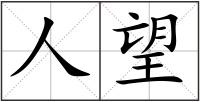 《北史·崔休传》:“ 休 少孤贫,矫然自立……尚书 王嶷 钦其人望。” 唐 包佶 《酬于侍郎湖南见寄十四韵》:“主恩留左掖,人望积南宫。”《续资治通鉴·宋徽宗宣和四年》:“ 额嚕温 素有人望,诸军闻其死,无不流涕。”